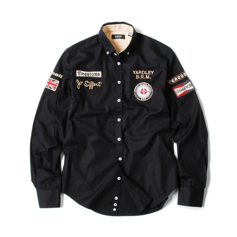 プリントや刺繍、ワッペンなど当時のスポンサーやネームロゴなどが贅沢に配されたWarson Motorsのシャツシリーズです。