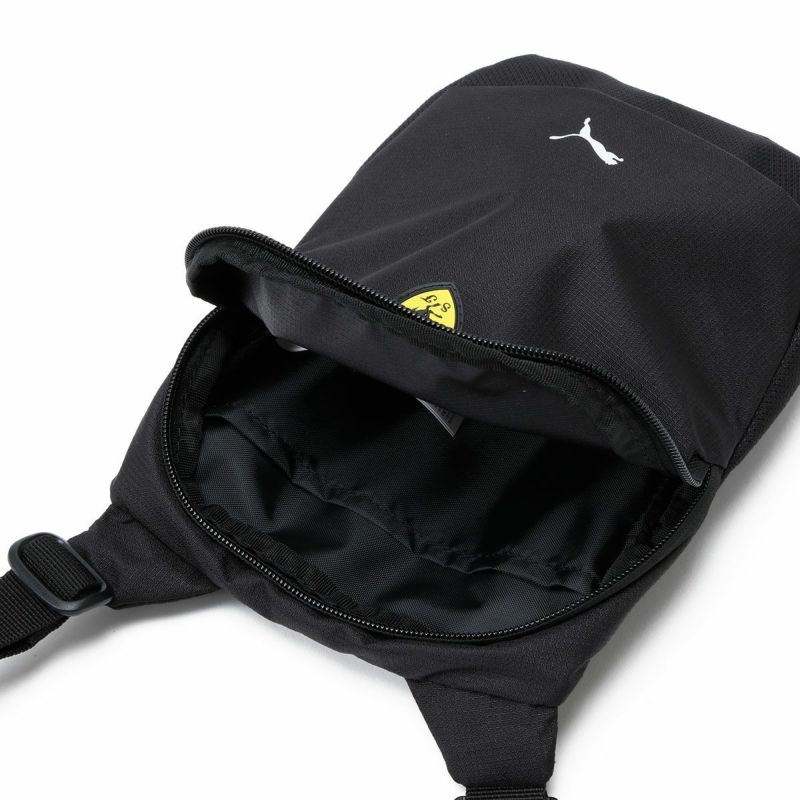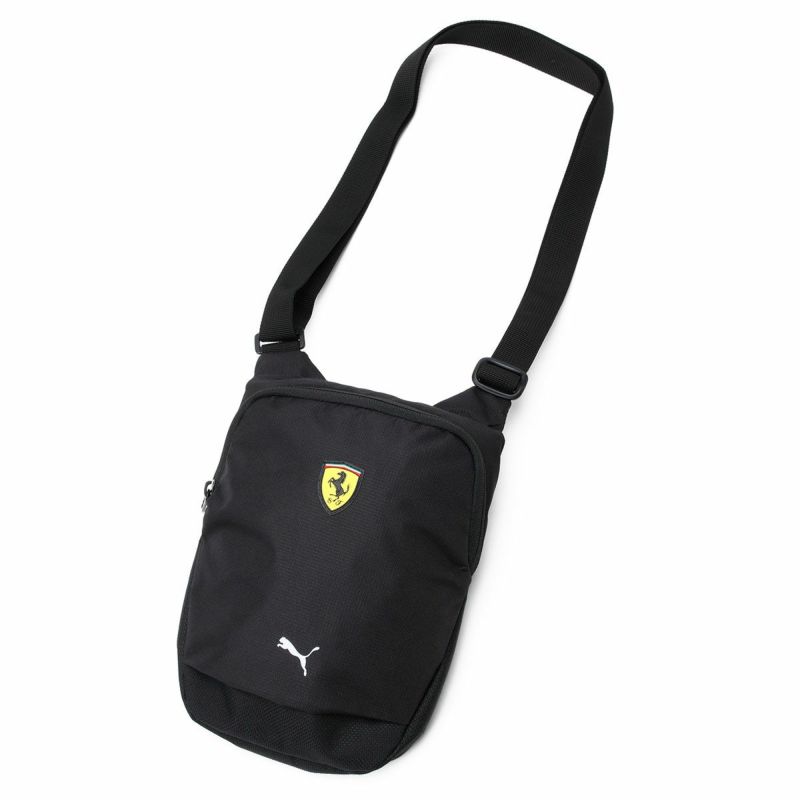 バッグの正面にスクーデリアフェラーリ シールドロゴがあしらわれたシンプルなデザイン。ジッパー付きのメインコンパートメントに加え、背面にもポケットが付属。付属のショルダーストラップは長さ調整が可能です。