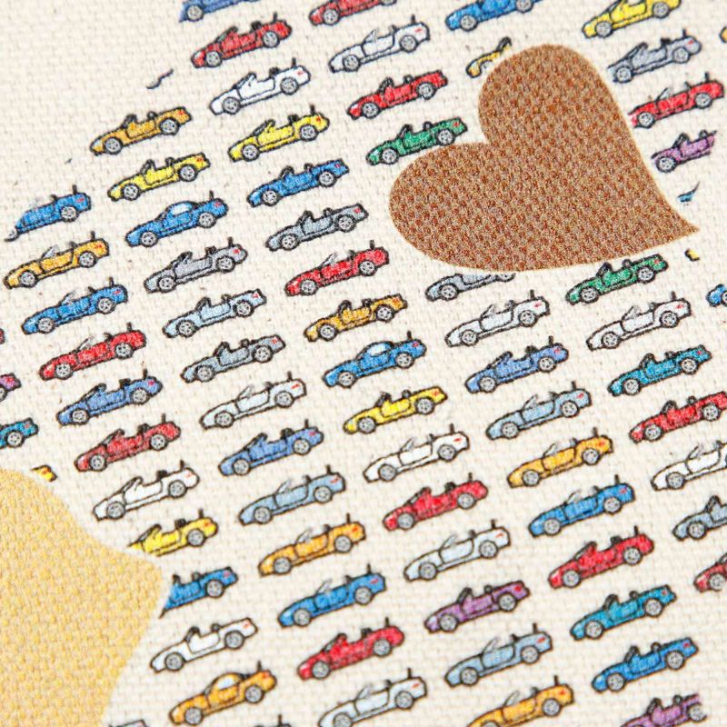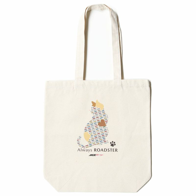 猫のシルエットの中にたくさんの歴代ロードスターを散りばめたデザインのトートバッグです。