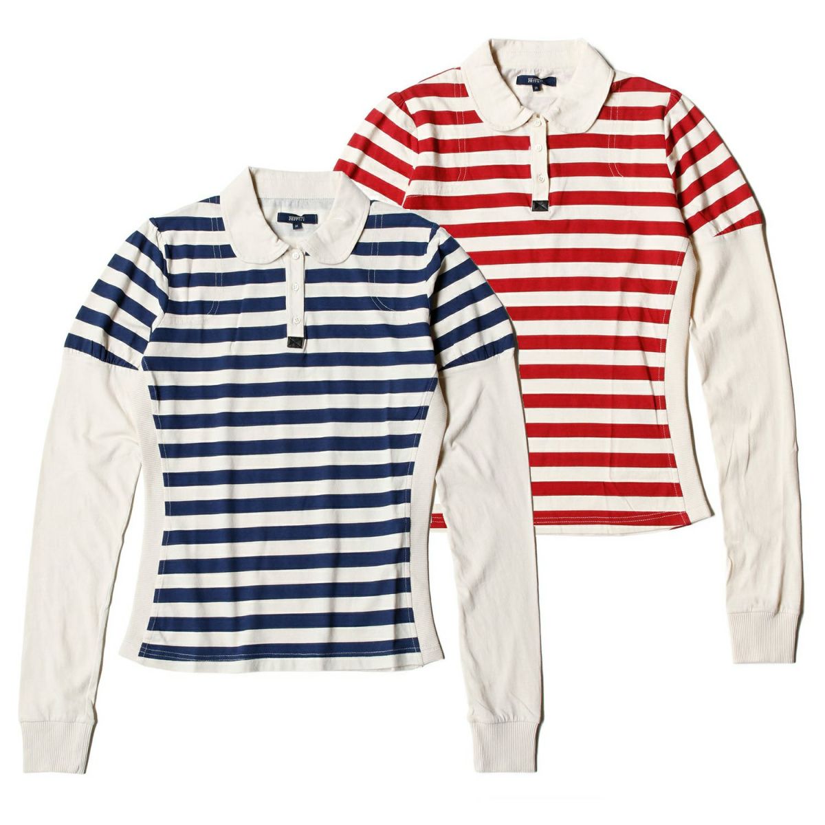 Ferrari フェラーリ ウィメンズ ストライプド プリント ホース ロングスリーブ ポロ