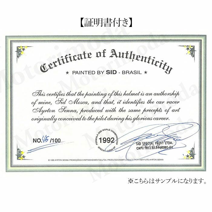 他の画像を見る 取寄せ AyrtonSenna SID MOSCA 1/1 アイルトン・セナ 30 Years of Legacy レプリカ ヘルメット ¥ 2,420,000 税込 お気に入りに登録する