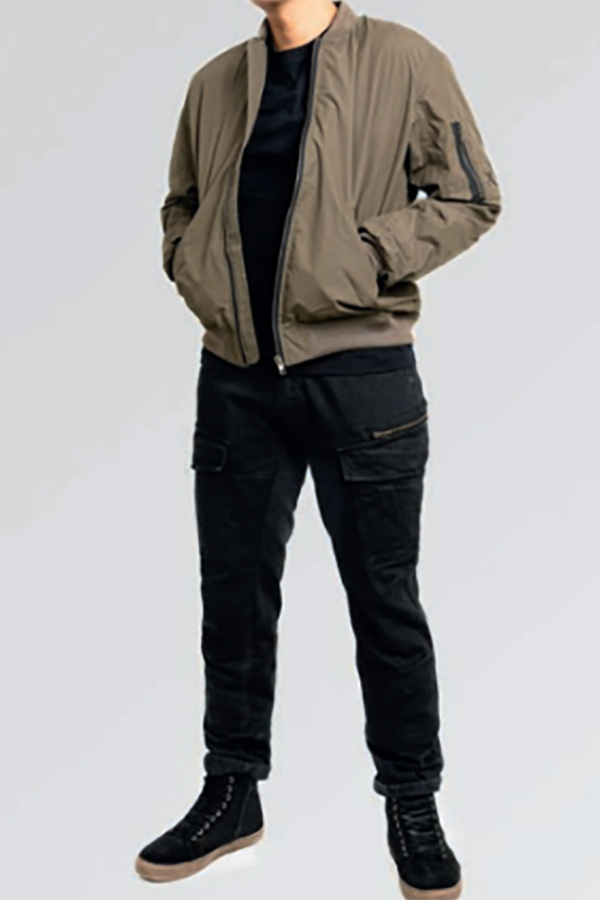 シャープなブラックに対して、オリーブカラーはより力強い印象になります。インナーとパンツを合わせて気合わせをしやすくしたり、インナーカラーに白やグレーを選べば、よりカジュアルでシンプルな雰囲気が漂います。