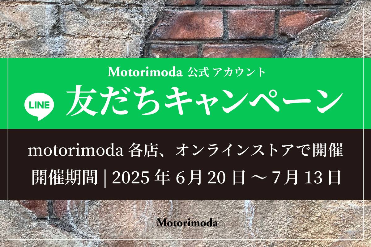 ただいま、Motorimoda各店、オンラインストアでは、新規でLINEをご登録頂いた方限定のキャンペーンを実施しております。いま公式LINEを友達登録して頂くと、すぐに使える「500円クーポン」を配布中です。店頭では友達追加後にその場で使用できるので、店頭に行かれる方は事前にご登録ください。