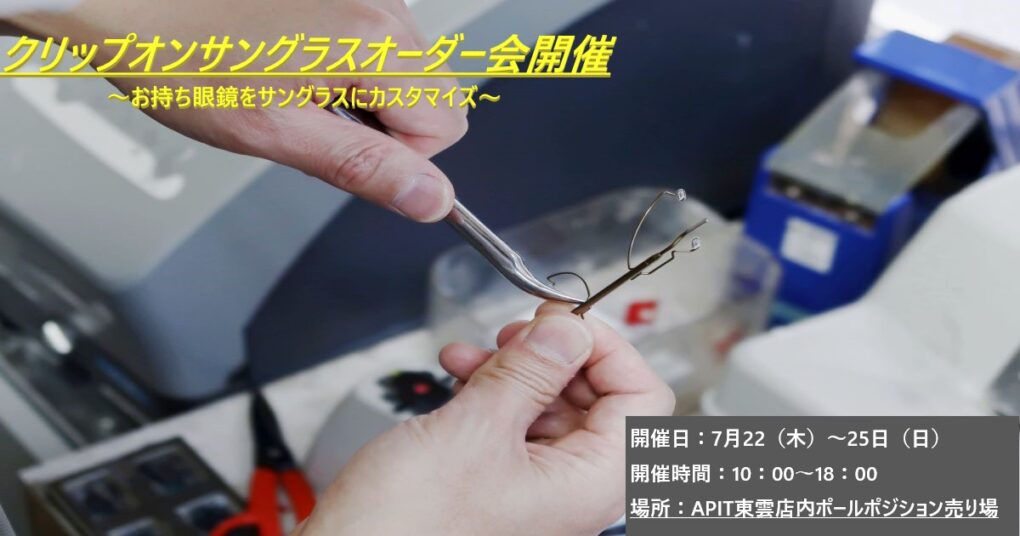 【APIT東雲店】 クリップオンサングラスオーダー会開催のお知らせ