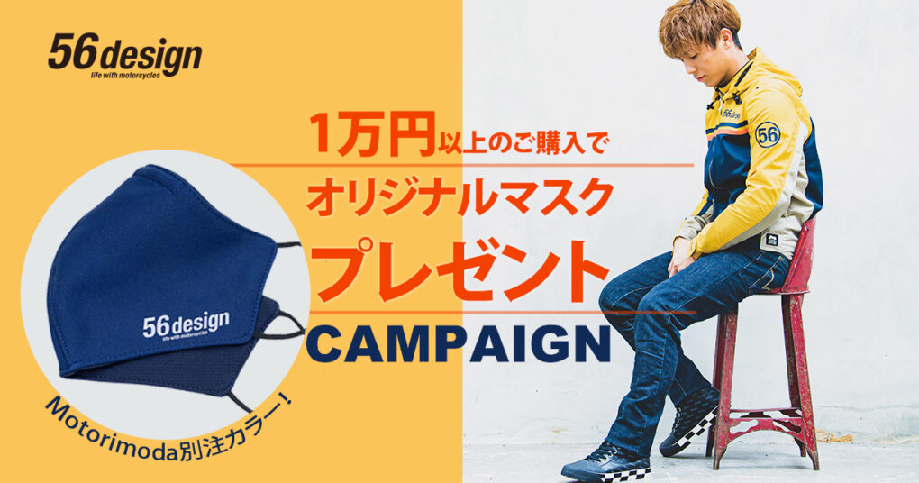 56design | オリジナルマスクプレゼントキャンペーン 本日2月18日より、店頭及びオンラインショップにて56designの商品を1万円以上お買い上げのお客様にもれなく、Motorimoda別注カラーの56designオリジナルマスクをプレゼントいたします。マスクの在庫には余 […] 2021/02/18 お知らせ