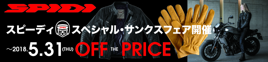 SPIDI / スピーディ 全品30%OFFフェア 2月28日まで開催中! イタリアはヴェローナに本社を置くSPIDI。 1977年、バイク用グローブのメーカーとしてスタート、MotoGPやWSBKのトップライダーをサポートし続けている信頼のブランドです。そんなSPIDIのアイテムがお得に手に入 […] 2019/12/25 イベント