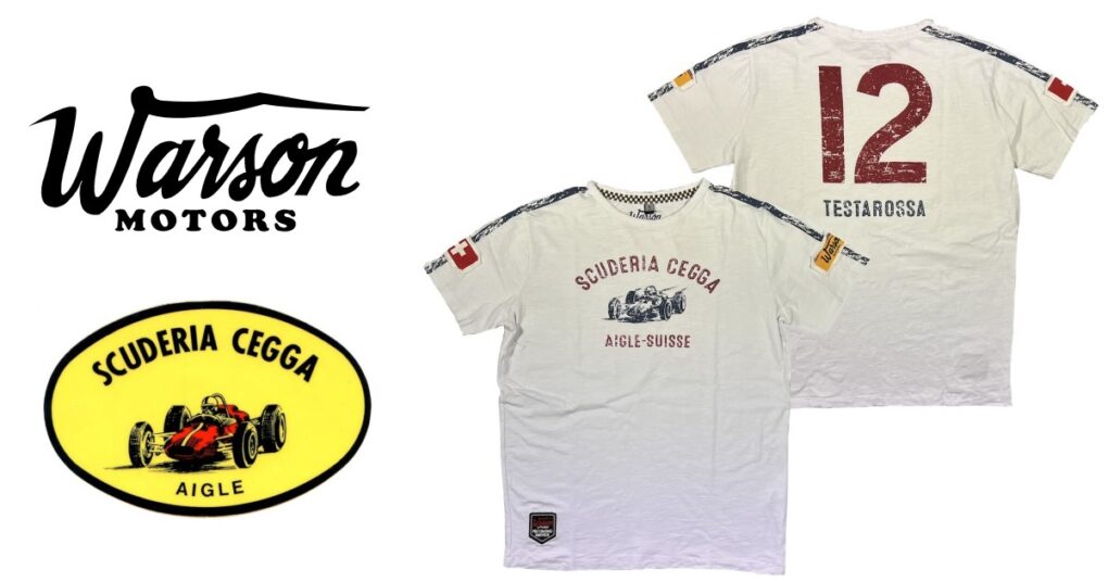 Warson Motors | Scuderia Cegga Testarossa Tシャツと レーサー Tシャツの2モデルが入荷! 1961年ニュルブルクリンク1000km耐久レースにScuderia CEGGAがエントリーした、CEGGA フェラーリ 250TRをトリブートしたTシャツと、ワーソン・モータースがサプライヤーとして、ボンネビルレースに […] 2022/05/06 クルマ関連記事